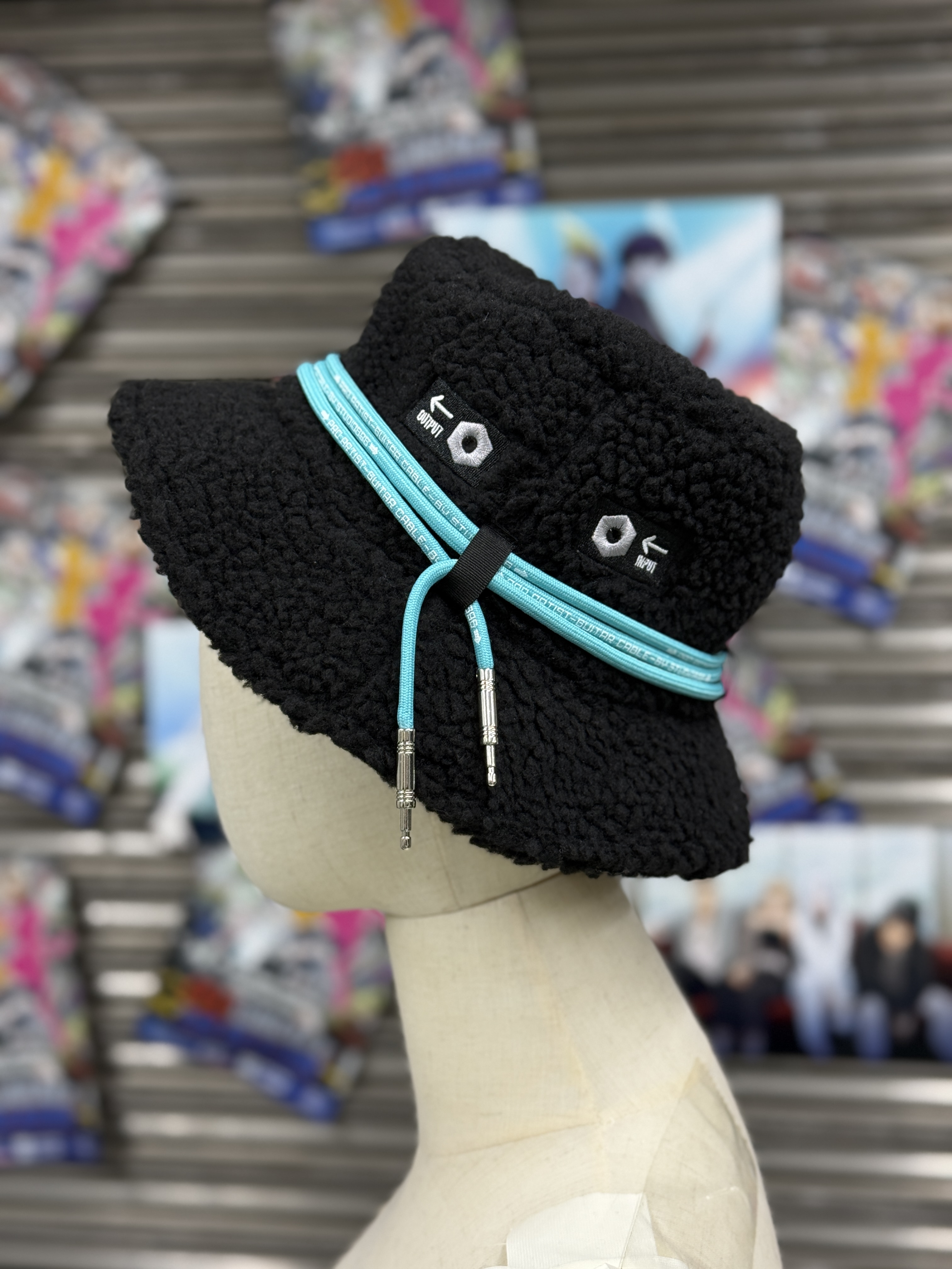 「←OUTPUT ←INPUT Boa Hat」に巻き付けたり、お持ちのパーカーの紐と差し替えたり、いろんな場面で活躍してくれるコードです。