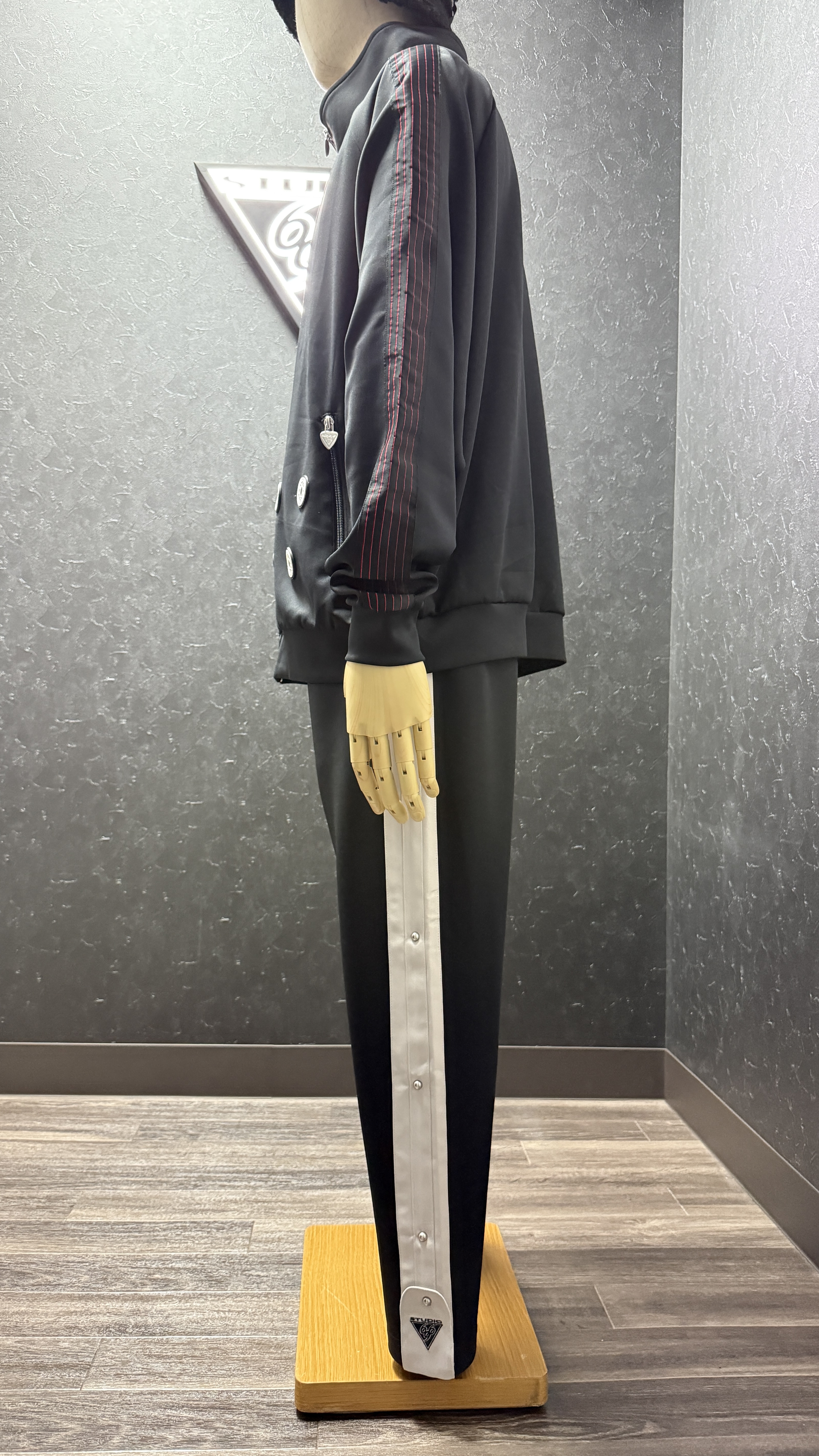両袖にはギター、ベースの弦をイメージしたラインを施しました。弦の太さや、弦同士の幅にもこだわっておりますのでぜひその目でご覧いただきたいです。